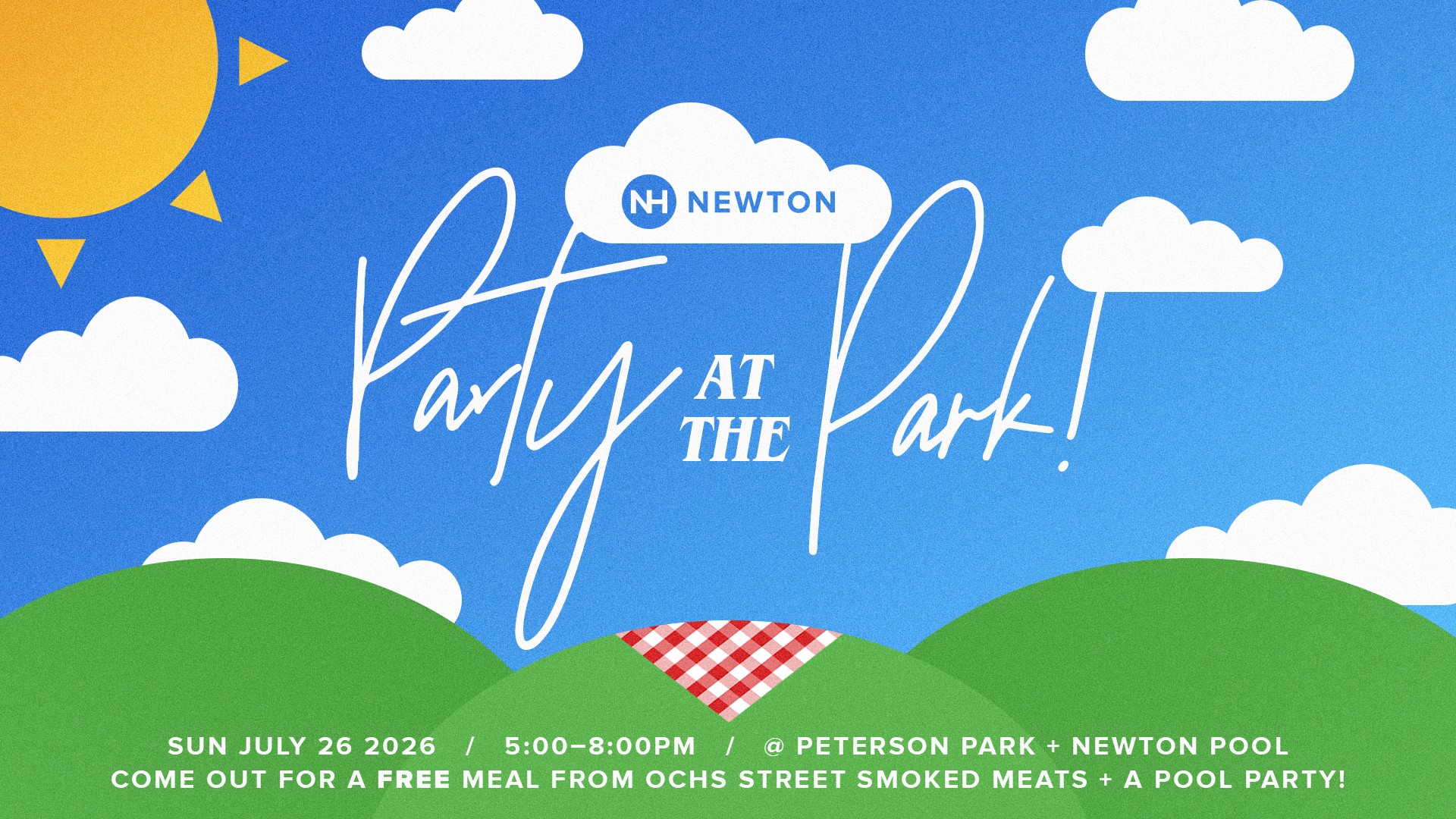 We would like to invite everyone to join us on Sunday, July 26, from 5:00–8:00PM for New Hope Newton’s Party at the Park! This is a great opportunity to invite families in the Newton Community to join you, and the perfect way to get to know other people here at new hope!